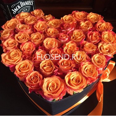Композиция в форме сердце из 51 хризантемы и 70 роз