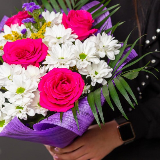 Помогли ни только выбрать букет, но и добавить новую изюминку! Большое спасибо.