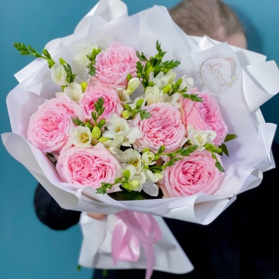 Букет приехал свежий, не пах “складом”. Композиция гармоничная. Получателю очень понравилось.