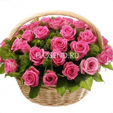 101 розовая роза в корзине